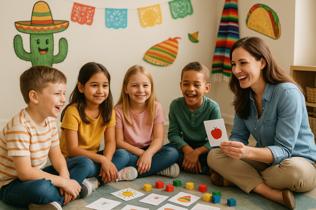 To zajęcia pełne śmiechu, ruchu, zabawy i magicznych historii. Uczymy dzieci tak, jak one uczą się języka ojczystego – poprzez emocje, rytm, powtarzalność, piosenki i interaktywne zabawy. Maluchy uczą się przez działanie, a nie „naukę dla nauki”. Lekcje są dopasowane do wieku i etapu rozwoju dziecka. Pracujemy w małych grupach lub indywidualnie. W zajęciach często uczestniczą native speakerzy, więc dzieci od początku słyszą naturalny akcent i uczą się rozumienia prawdziwego języka w kontekście. Dzięki temu dzieci oswajają się z hiszpańskim w sposób lekki, radosny i skuteczny.